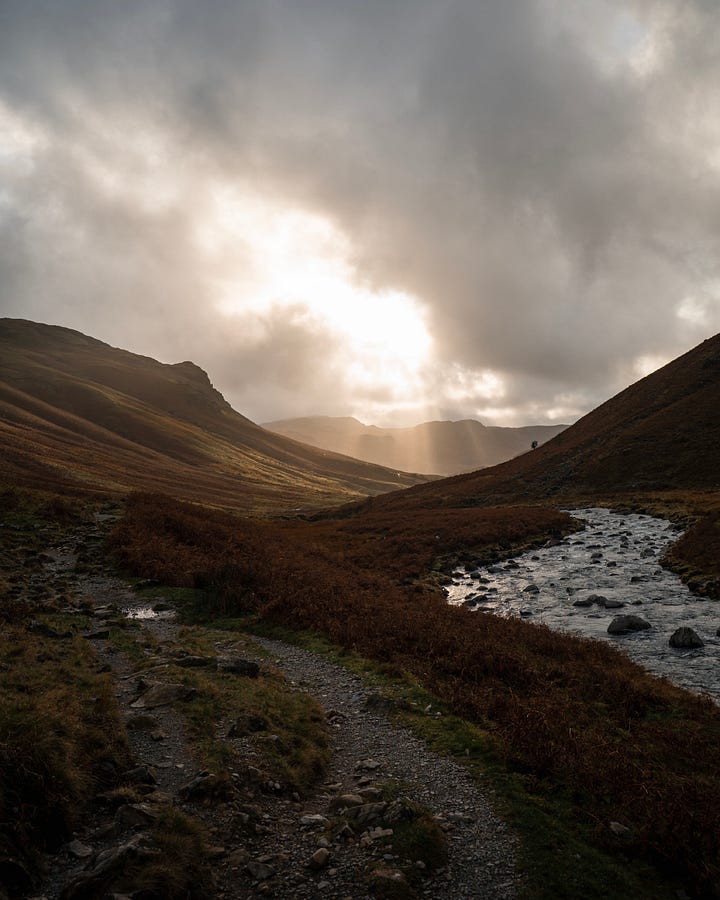 An early morning hike to the summit of Rannerdale Knotts near Buttermere. One of the smaller mountains of the Lake District, this aesthetically pleasing little fell is typically bustling with tourists in the summer, but the cold, blustery winds of late autumn and an early start allowed us to enjoy the mountain in peace, chasing crepuscular rays, studying light and shadow, making it to the summit and back down in time for breakfast in our van. The colder months are a gift for those seeking solitude.